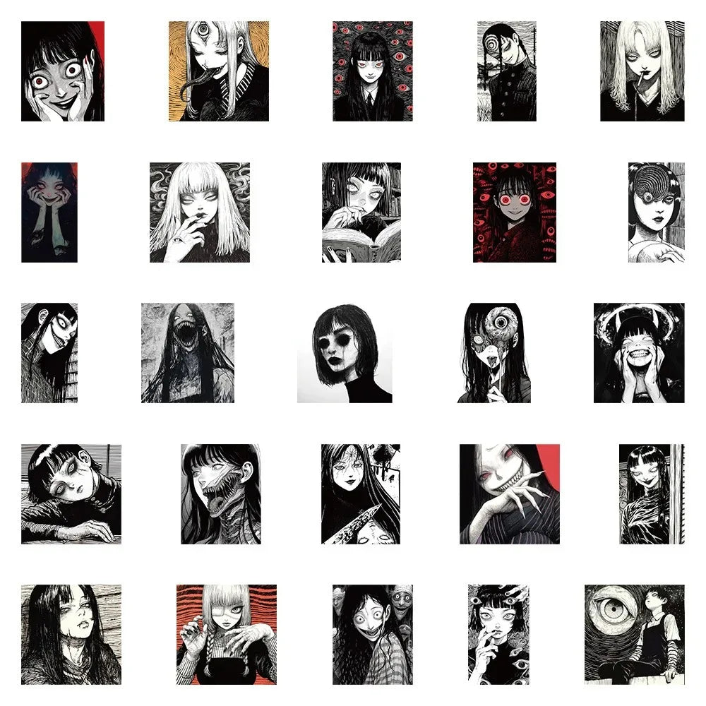 10/30/50pcs Black & White Horror Style Girl Cartoon Stickers – Dark Graffiti Waterproof Decals
