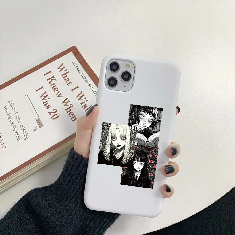 Personalize your gear with this Black & White Horror Style Girl Cartoon Sticker Pack, featuring dark graffiti designs perfect for suitcases, helmets, notebooks, and more!