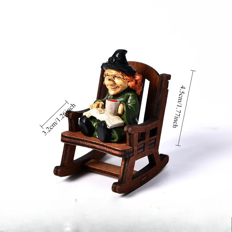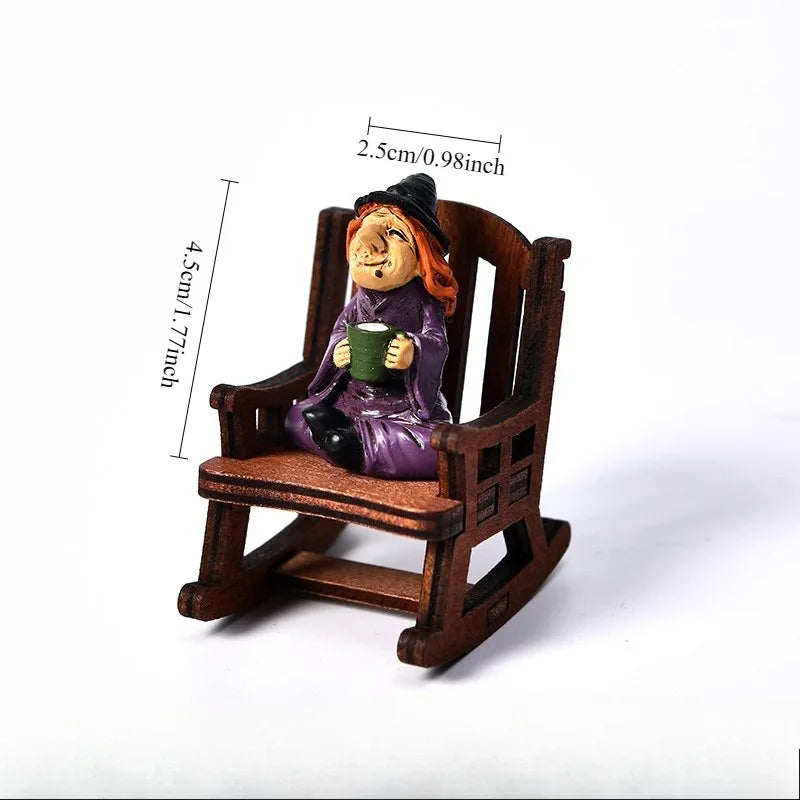 1PCS Halloween Witch Resin Craft Decor – Rocking Chair Party Ornament for Home & Desktop