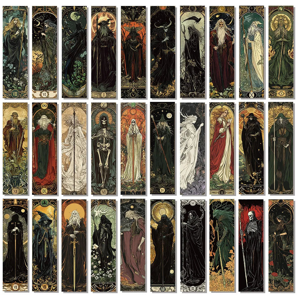 30/60PCS Creative Gothic Style Dark Wizard Bookmarks – Annotated DIY Book Tags